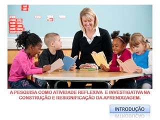 O documento discute a importância da educação por meio da pesquisa no ambiente escolar. A prática educativa deve se afastar de métodos em que o professor é o único detentor do conhecimento e deve envolver pesquisa, colaboração e capacidade de elaboração própria. A pesquisa desenvolve a reflexão crítica, torna as aulas mais atraentes e permite que os alunos reconstruam o conhecimento.