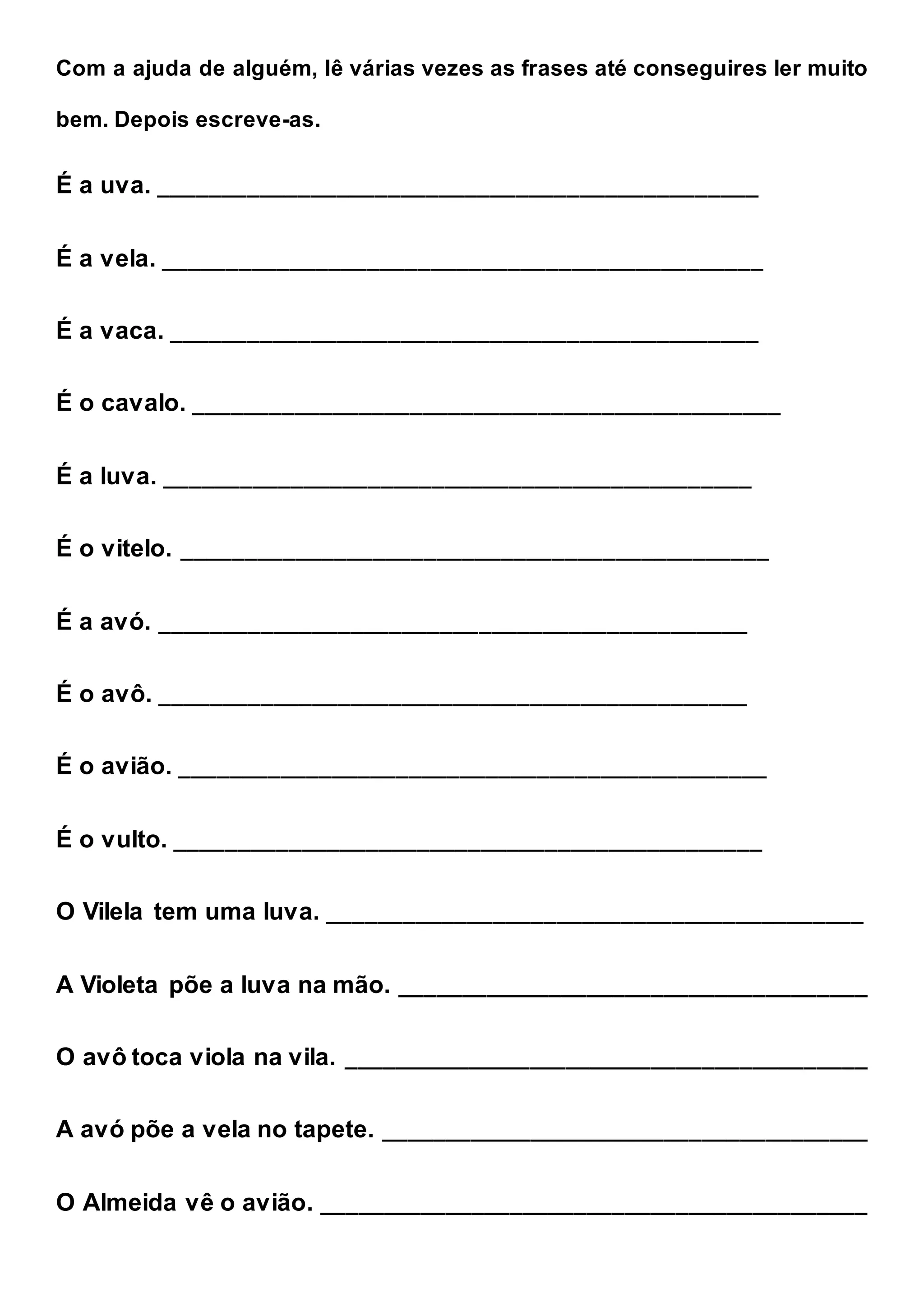 Com a ajudade alguém, lê várias vezes as frases até conseguires ler muito