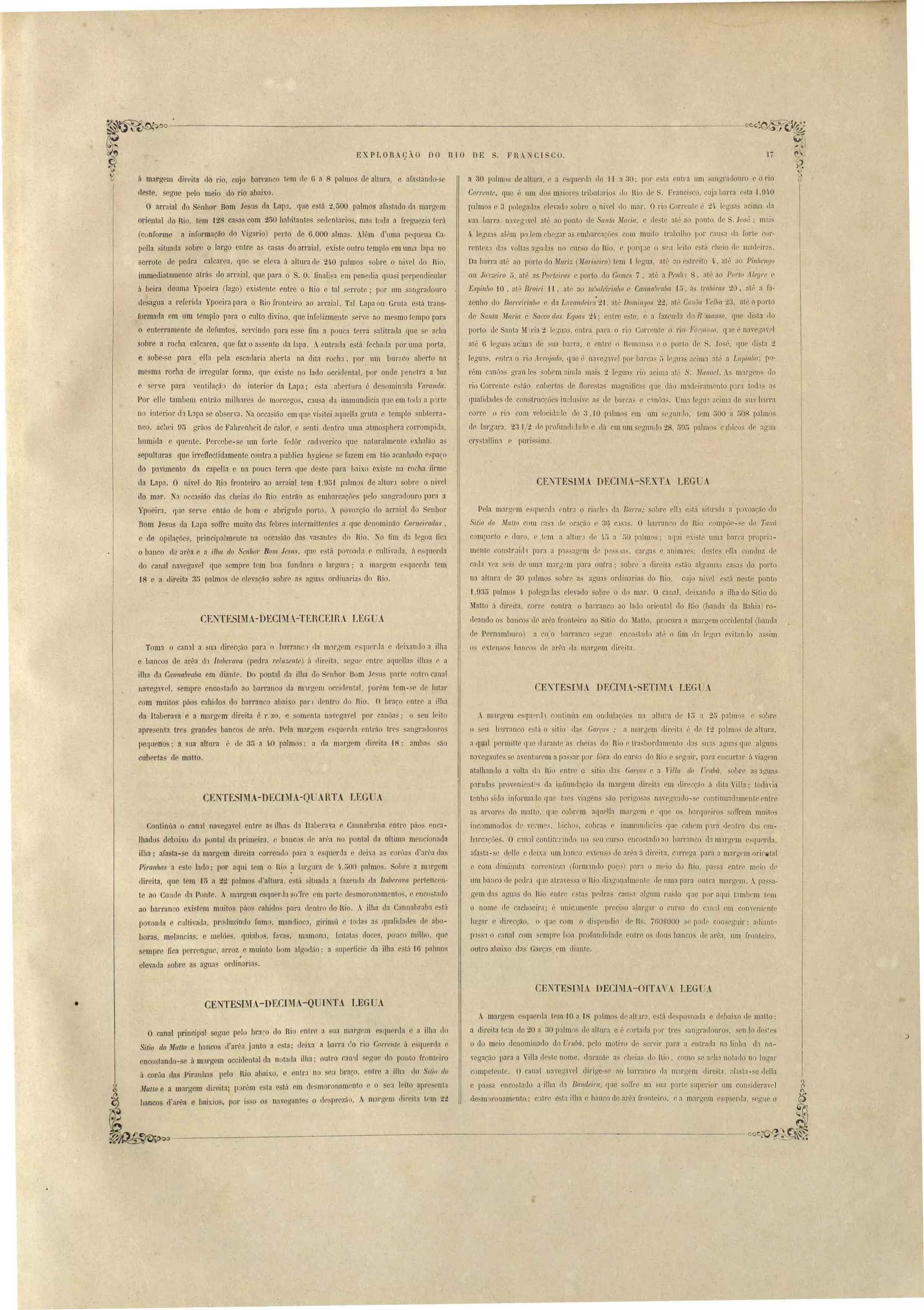 1) O documento descreve a navegação no Rio São Francisco, incluindo suas margens, ilhas, e afluentes.