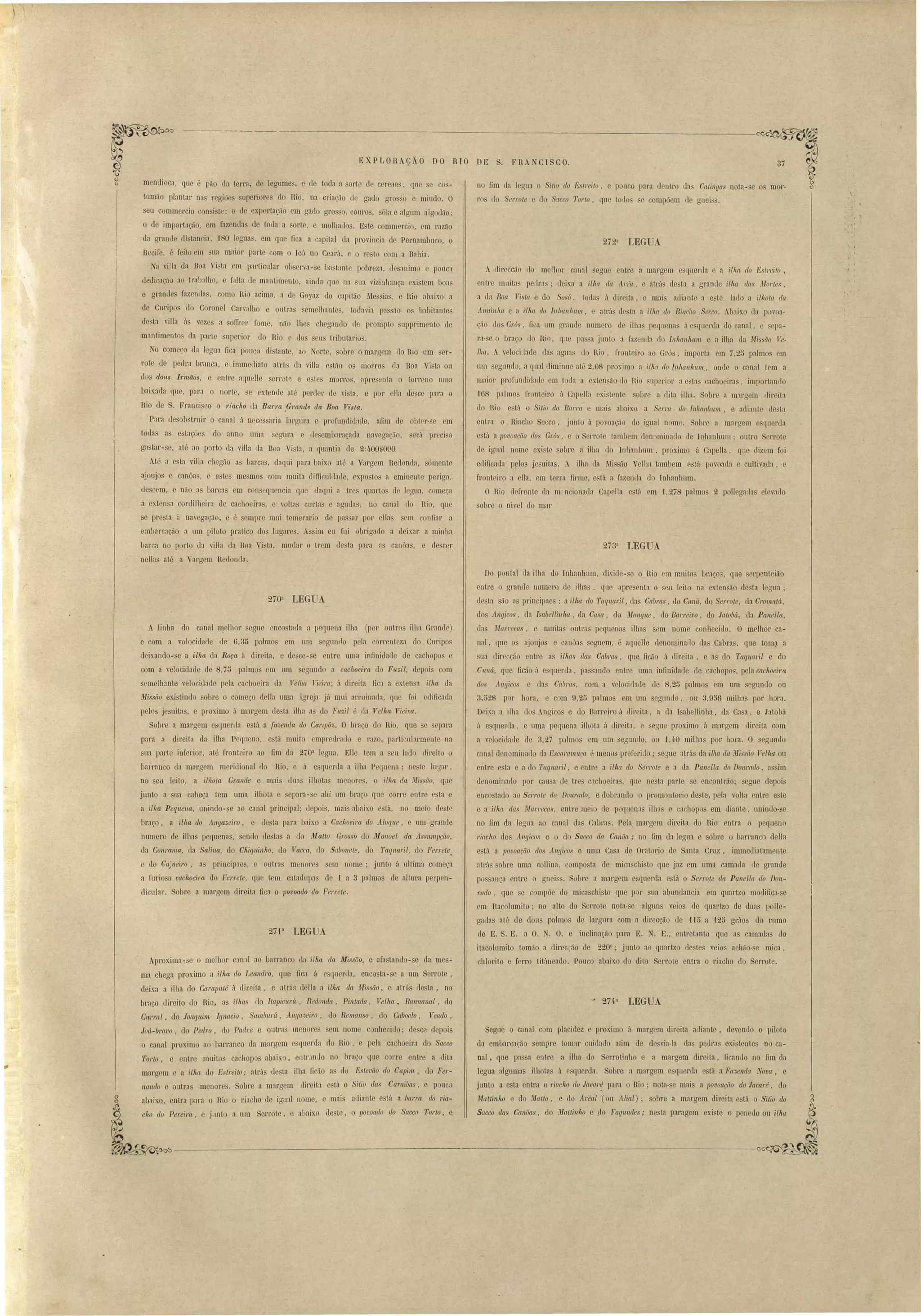 2) É detalhado o canal de navegação entre as ilhas, incluindo velocidades da correnteza e nomes de cachoeiras.