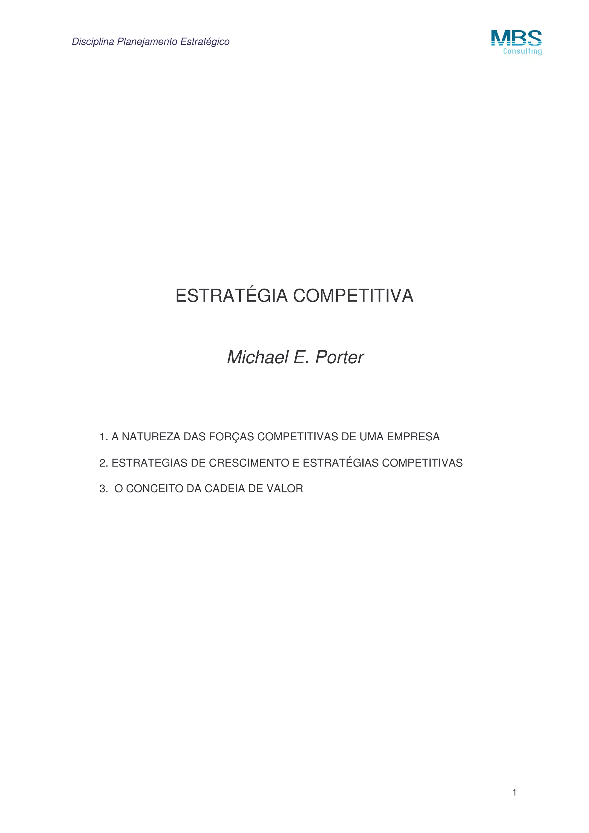 O documento discute as forças competitivas de uma empresa segundo Michael Porter, incluindo entrantes potenciais, fornecedores, compradores, substitutos e concorrentes. Também aborda estratégias de crescimento como penetração de mercado e diferenciação competitiva.