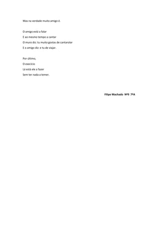 O poema narra a viagem do Muro para Marte, onde ele descansa e sonha. Ele precisa parar sua viagem para evitar um asteróide. O Muro visita seu amigo de infância, que gosta de cantarolar, enquanto o Muro gosta de viajar. No final, o Muro faz exercício sem medo.