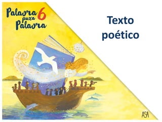 Os textos poéticos são textos criativos que expressam sentimentos, emoções e maneiras de ver o mundo de forma rítmica e musical através do uso de recursos expressivos como metáforas. Estes textos podem ser escritos em verso ou prosa e apresentam um "sujeito poético" que revela as emoções.