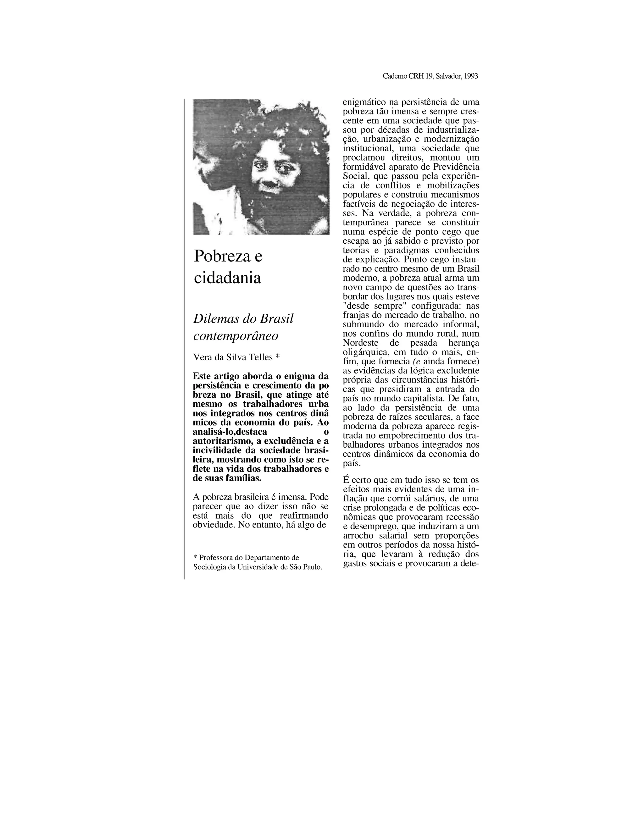 1) O documento discute o enigma da persistência e crescimento da pobreza no Brasil, que atinge até trabalhadores urbanos integrados na economia.
