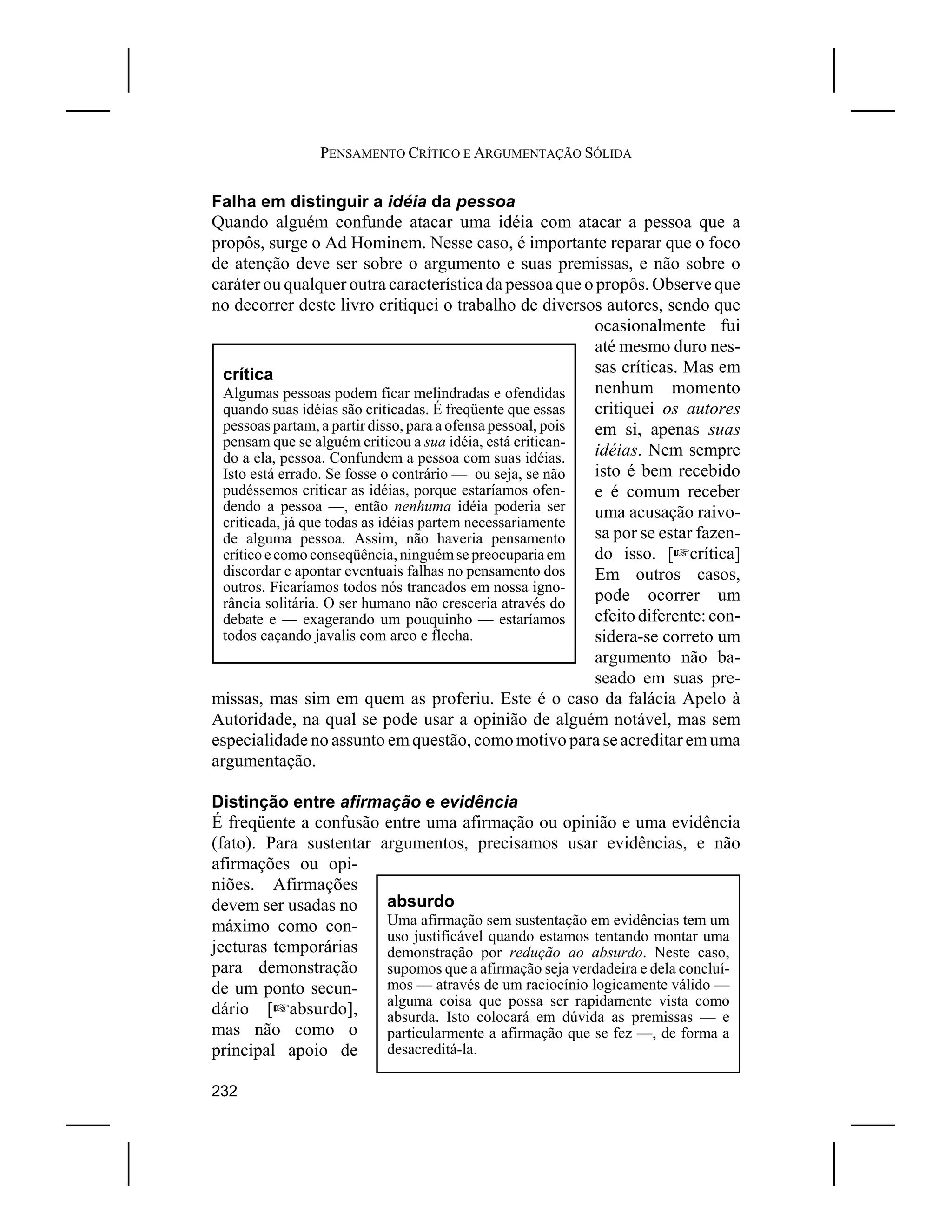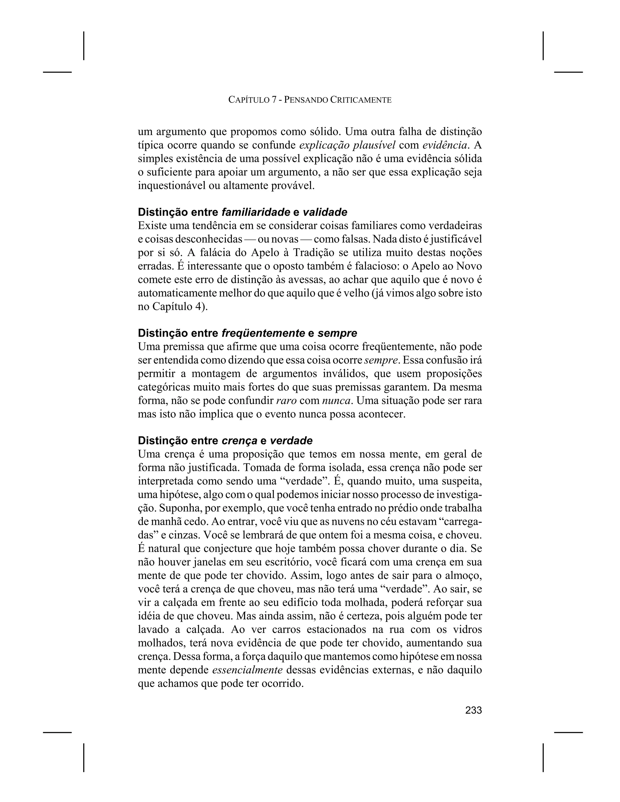 O documento discute vários tipos de distinções importantes para o pensamento crítico, incluindo: (1) distinguir entre a idéia e a pessoa que a propõe; (2) distinguir entre afirmações e evidências; (3) distinguir entre familiaridade e validade de um argumento.