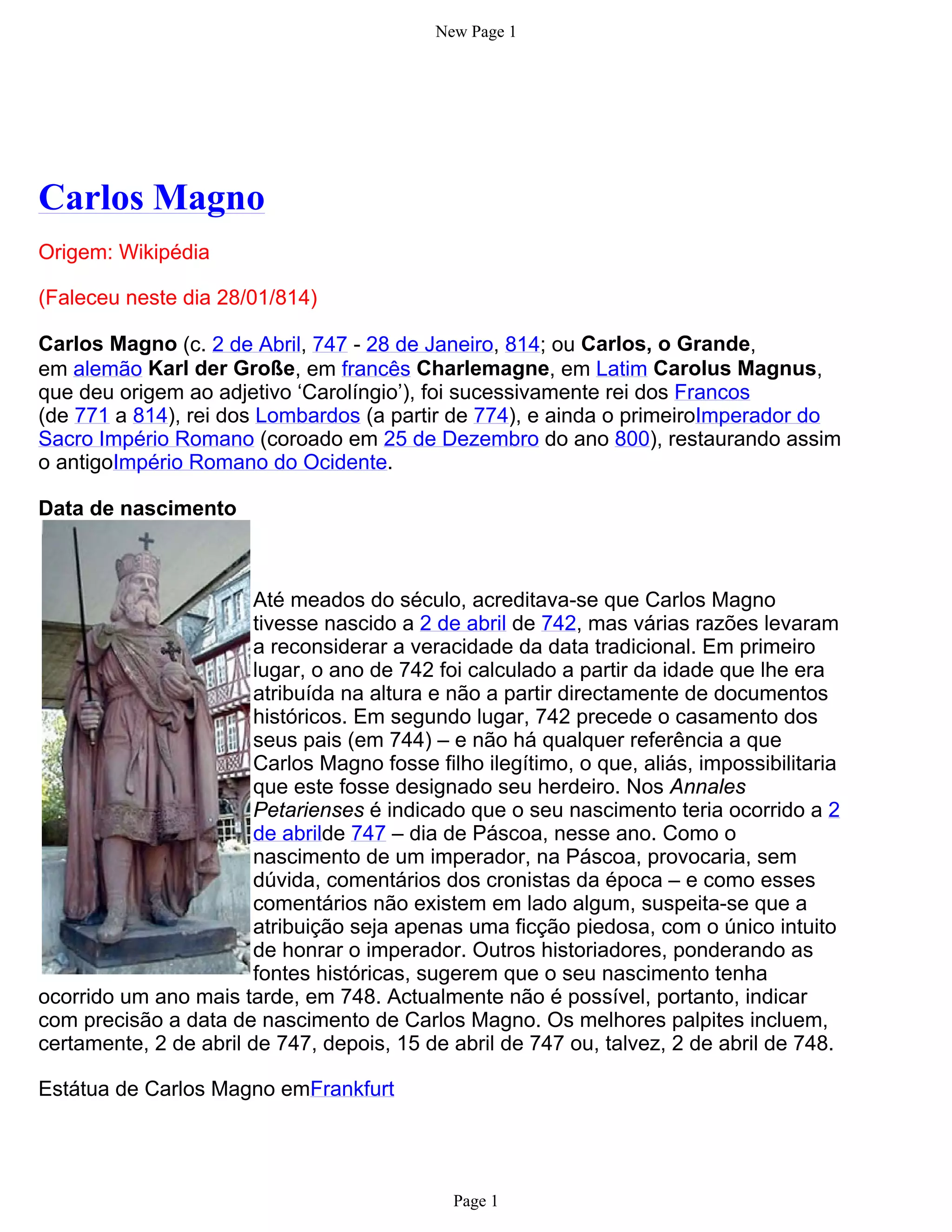 Carlos Magno foi um rei franco que unificou grande parte da Europa Ocidental no século 8. Ele foi coroado o primeiro imperador do Sacro Império Romano em 800. Carlos Magno promoveu reformas na educação e no sistema monetário para fortalecer seu império. Ele teve muitos filhos de seus casamentos e concubinas que ajudaram a expandir sua dinastia.