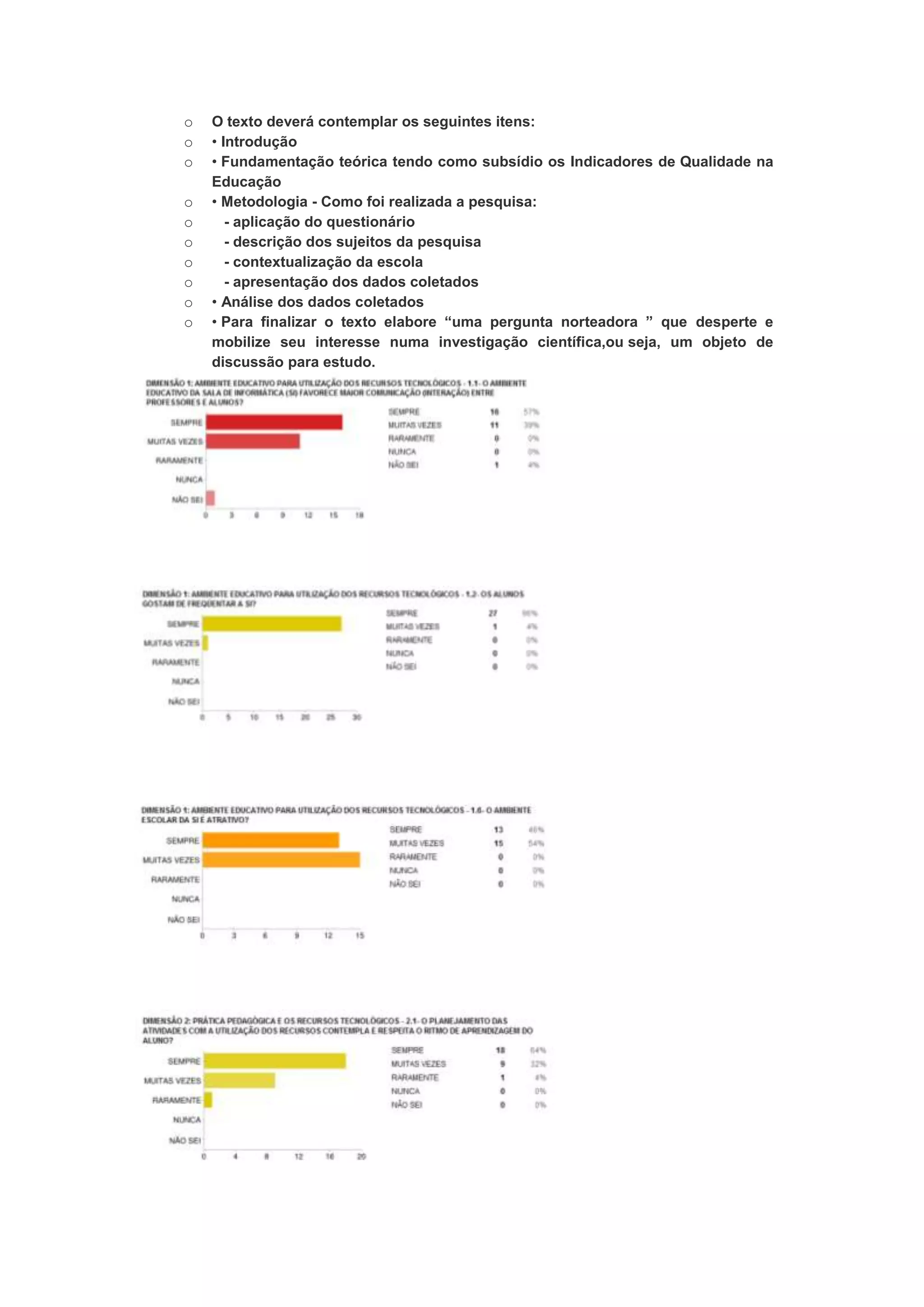 O documento fornece diretrizes para um texto sobre indicadores de qualidade na educação, incluindo uma introdução, fundamentação teórica, metodologia de pesquisa com questionários e análise de dados, e uma pergunta final para guiar discussões futuras.