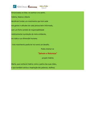Marta sente a dor da natureza poluída e quer ajudar a protegê-la. Ela, Valéria e Helena decidem fundar um movimento chamado "Salvemos a Natureza" para conscientizar as pessoas sobre a importância de preservar o meio ambiente. Valéria propõe escrever cartas para crianças de todo o mundo explicando os problemas e a necessidade de salvar a vida no planeta.