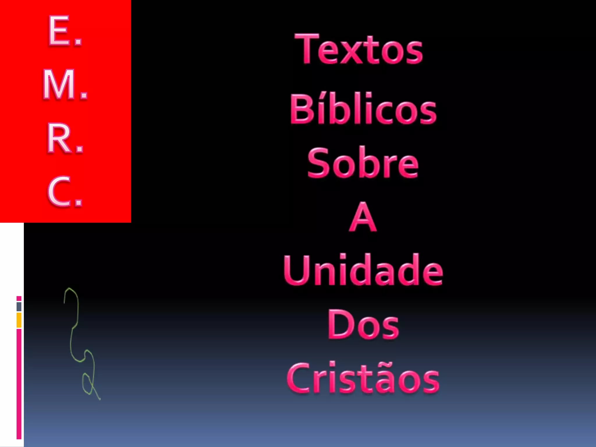 O documento discute textos bíblicos sobre a unidade dos cristãos, incluindo o mandamento novo de Jesus para que seus discípulos se amem uns aos outros, a oração de Jesus para que todos sejam um, e a advertência de Paulo contra a divisão na igreja de Corinto.