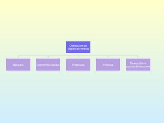 O documento discute como o clima pode afetar o desenvolvimento de uma sociedade, com alguns investigadores apontando que climas mais frios na Europa podem ajudar a eliminar vírus e bactérias. Também descreve como países em desenvolvimento pagam mais em direitos aduaneiros do que países desenvolvidos em relação ao valor de suas exportações.