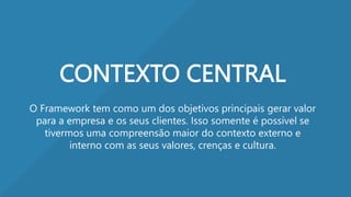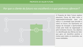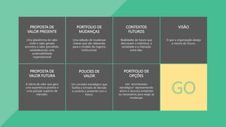O documento apresenta um resumo do framework de valor futuro do livro 'Geração de Valor Futuro', destacando a importância da colaboração de múltiplos especialistas na construção de ideias sobre incerteza, inovação e estratégia. O framework tem como objetivo principal ajudar organizações a transformar o futuro em uma habilidade competitiva, integrando contextos internos e externos para proporcionar valor a longo prazo. Além disso, o texto enfatiza a modularidade do framework, permitindo adaptações conforme as necessidades e desafios específicos de cada organização.