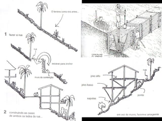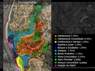O documento aborda a história e os desafios da Vila Mata Escura em Salvador, destacando a urbanização desordenada e as ocupações irregulares desde a década de 1940. Propõe um modelo urbanístico sustentável, focado na energia limpa e na organização comunitária, para enfrentar problemas como desmatamento, poluição e exclusão social. Sugere soluções como mini-hidrelétricas, biogás e práticas de reciclagem para promover a auto-sustentabilidade e melhorar a infraestrutura local.
