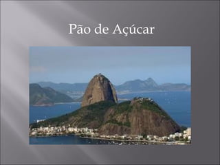 O documento descreve o Pão de Açúcar, um complexo de morros localizado no Rio de Janeiro composto pelo morro do Pão de Açúcar, morro da Urca e morro da Babilônia, que é um dos maiores cartões-postais da cidade e atração turística internacional pelas suas características únicas à beira da baía de Guanabara.