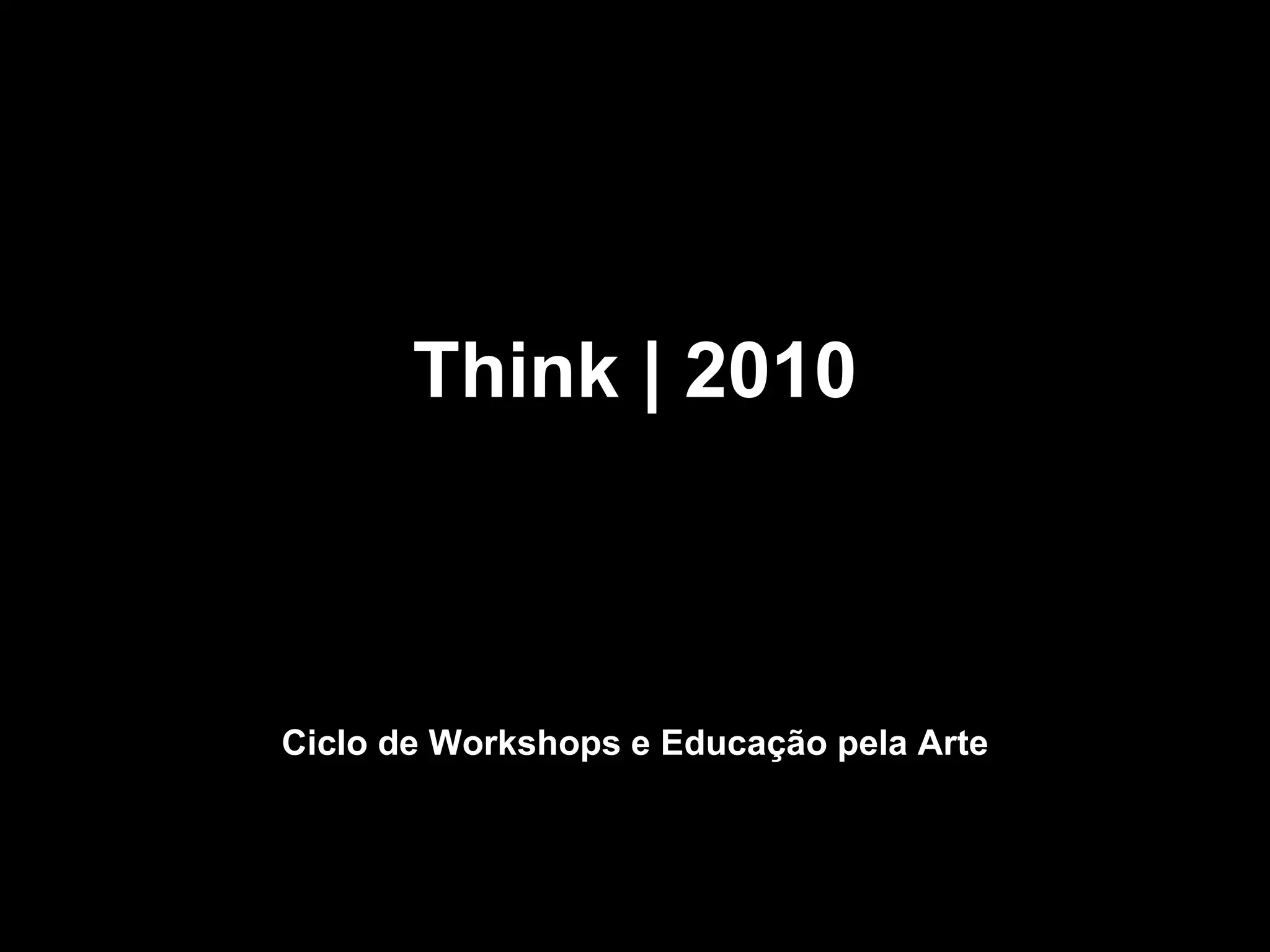 O documento descreve uma série de workshops e eventos educacionais sobre arte a serem realizados entre 26 e 30 de abril de 2010, incluindo espetáculos de música clássica, música contemporânea, música tradicional, teatro, poesia, dança contemporânea, poesia, prosa, fotografia e pintura. Ele fornece links para mais informações e inscrições nos eventos.
