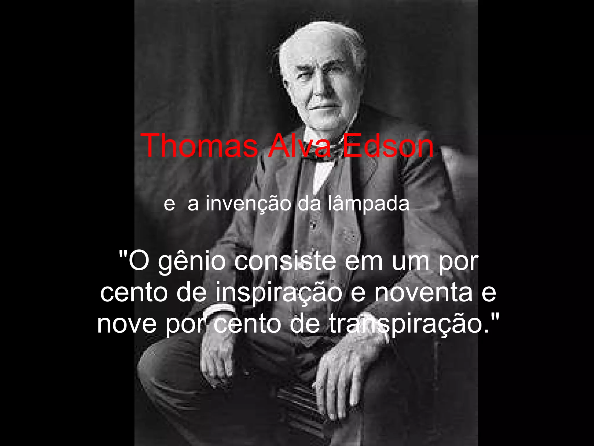 Thomas Edison nasceu em 1847 nos Estados Unidos e se tornou um grande inventor, registrando mais de 1000 patentes. Sua invenção mais famosa foi a lâmpada elétrica incandescente em 1879, que usava um filamento de carbono dentro de um bulbo de vidro vazio para produzir luz por mais de 40 horas pela primeira vez. Isso ajudou a popularizar o uso da eletricidade e marcou o início da Era da Eletricidade.