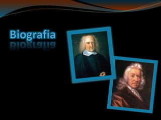 Thomas Hobbes nasceu em 1588 na Inglaterra e faleceu em 1679. Ele foi um filósofo político que escreveu obras influentes como Leviatã defendendo o absolutismo e o pacto social. Sua principal obra foi Leviatã, publicada em 1651, na qual defendia a existência de um governo absoluto para garantir a ordem e a paz social.
