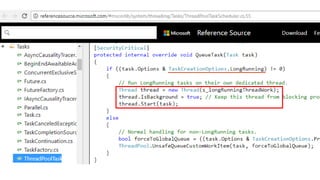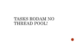 O documento discute como usar threads e tarefas para processamento paralelo de eventos de forma eficiente. Ele recomenda usar tarefas (Task) em vez de threads diretamente para aproveitar recursos de forma mais eficiente através do thread pool do .NET. Também discute quando usar threads ou tarefas dependendo se a operação é CPU-intensive ou I/O-bound.
