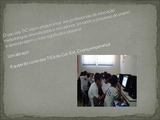 Os alunos da 8a série se reuniram na biblioteca para discutir como resolver problemas da comunidade, como a educação, meio ambiente e tecnologia. Eles reconheceram que a tecnologia leva tempo para dominar e que as escolas precisam aprender a usar melhor os recursos tecnológicos disponíveis.