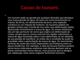 Um tsunami pode ser gerado por sismos, deslocamentos da terra, explosões vulcânicas ou impactos de meteoros, sendo as consequências devastadoras, como demonstrado pelo recente tsunami na Indonésia que matou pelo menos 528 pessoas. Sistemas de alerta para tsunamis estão sendo aprimorados para prevenir tragédias, como a implementação de tecnologias de monitoramento de pressão no fundo do oceano. A conferência da ONU em Kobe, Japão, focou em mobilizar recursos para um sistema de alerta avançado e estratégias de resposta a desastres.