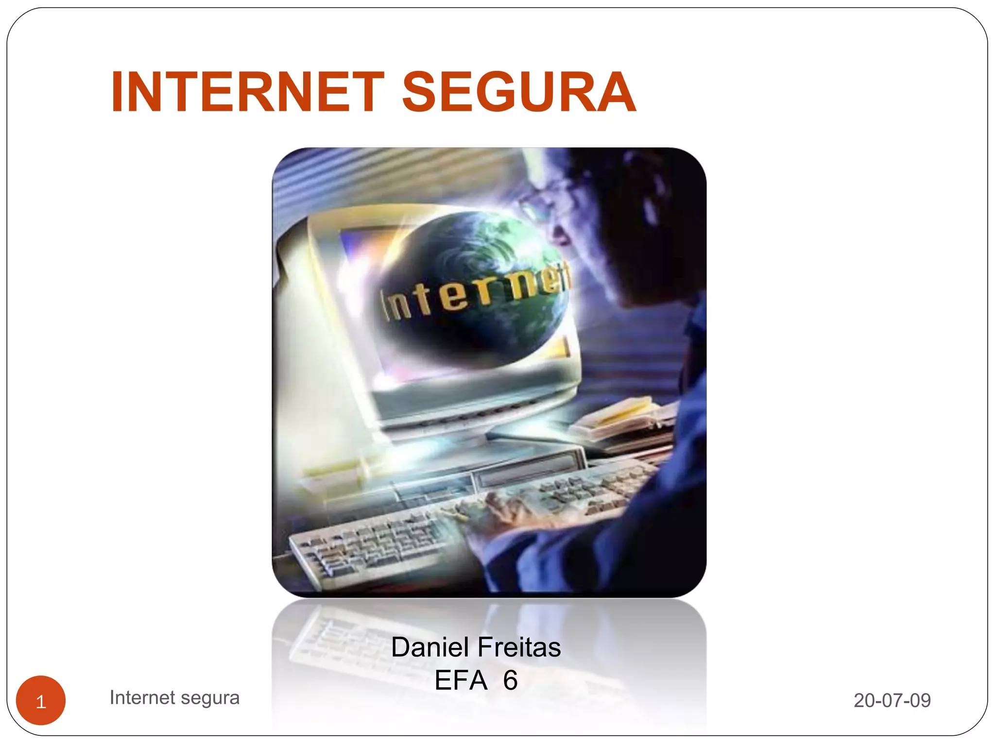 O documento discute os riscos e desafios da internet segura, incluindo cuidados com sites, e-mail, blogs, redes sociais e jogos online. Ele também cobre cyberbullying, predadores online e ciberdependência, fornecendo conselhos sobre como se manter seguro online.
