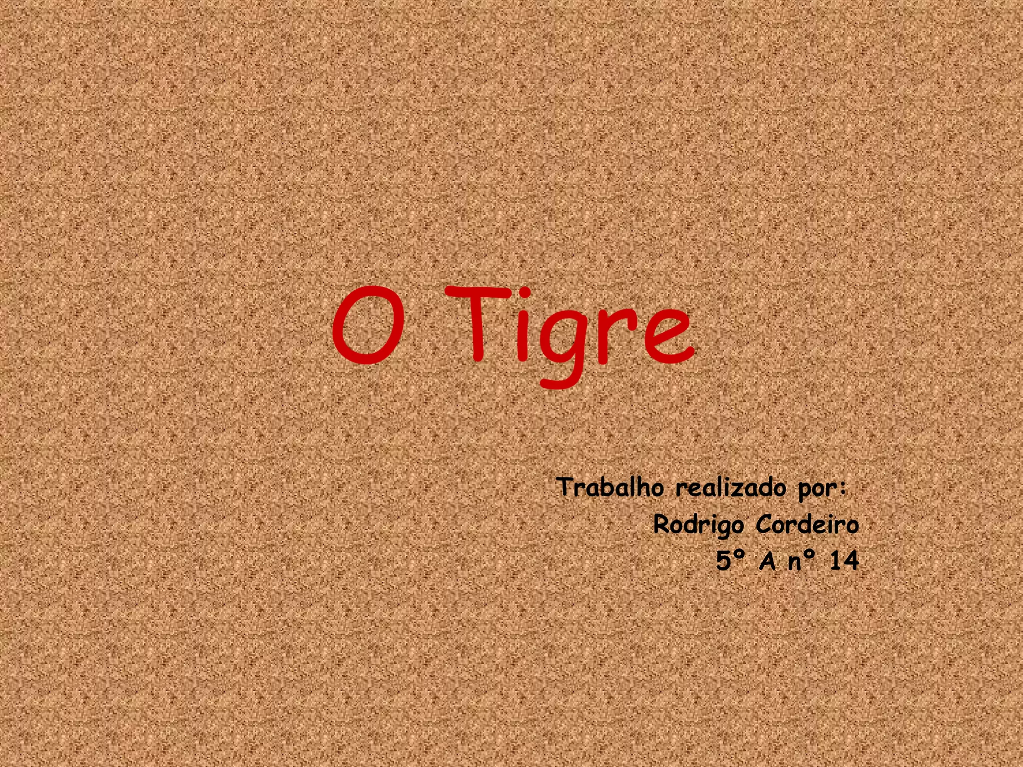 O documento descreve as características do tigre, incluindo sua classificação, distribuição geográfica, subespécies e ameaças à sua sobrevivência, principalmente a medicina tradicional chinesa que usa partes do tigre. Resume também que os tigres estão em vias de extinção e precisam ser protegidos.