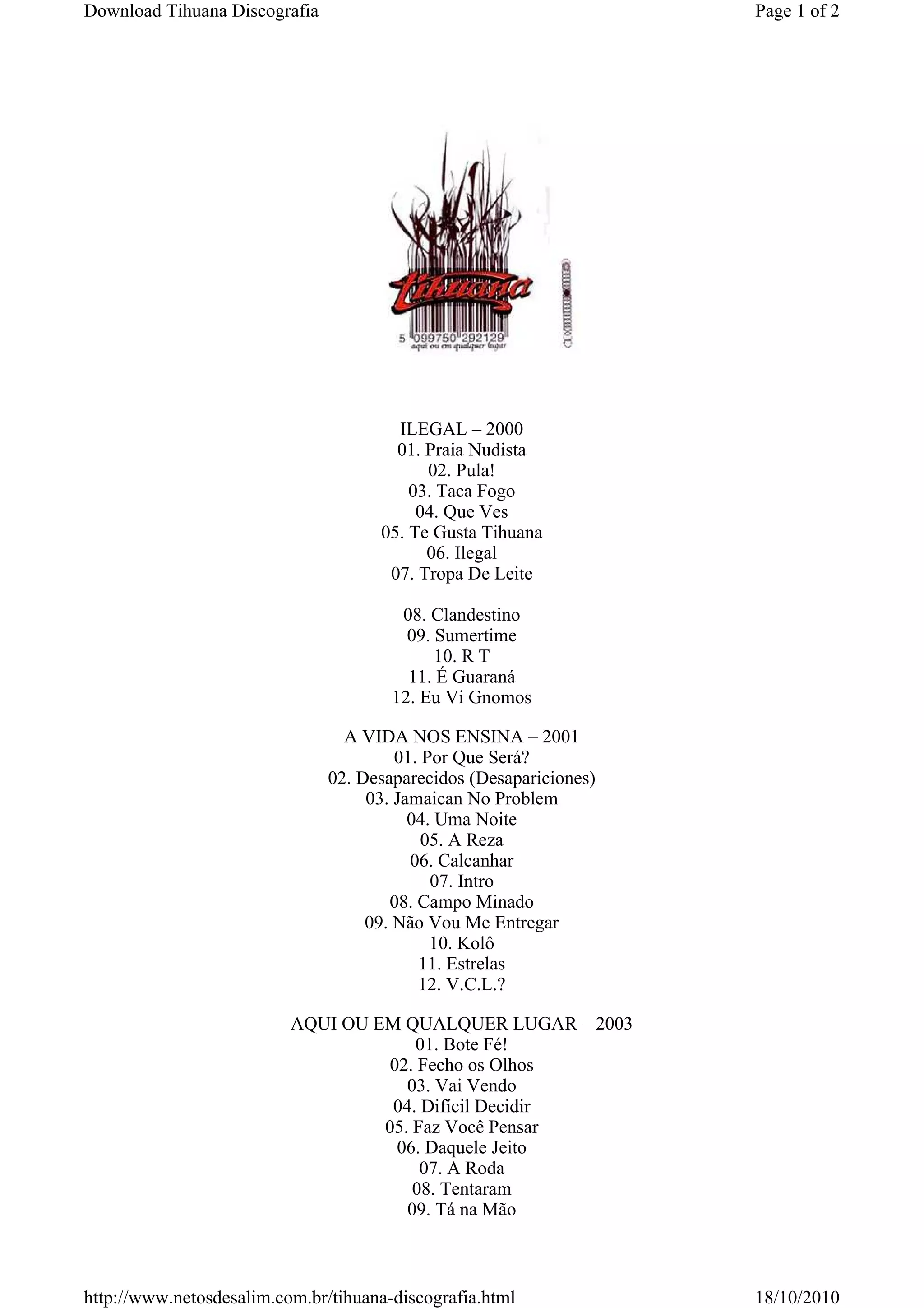 http://www.netosdesalim.com.br/tihuana-discografia.html 18/10/2010