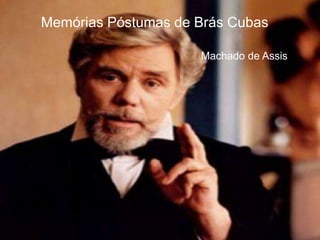 Memórias Póstumas de Brás Cubas é narrado em primeira pessoa por Brás Cubas após sua morte. A obra utiliza dois tempos, um psicológico que permite ao narrador contar sua vida de forma não linear, e um cronológico que segue a ordem lógica dos acontecimentos desde a infância até a morte. A história se passa em cidades do interior de São Paulo no século XIX e apresenta características do Romantismo brasileiro como a valorização da cultura nacional e da natureza.
