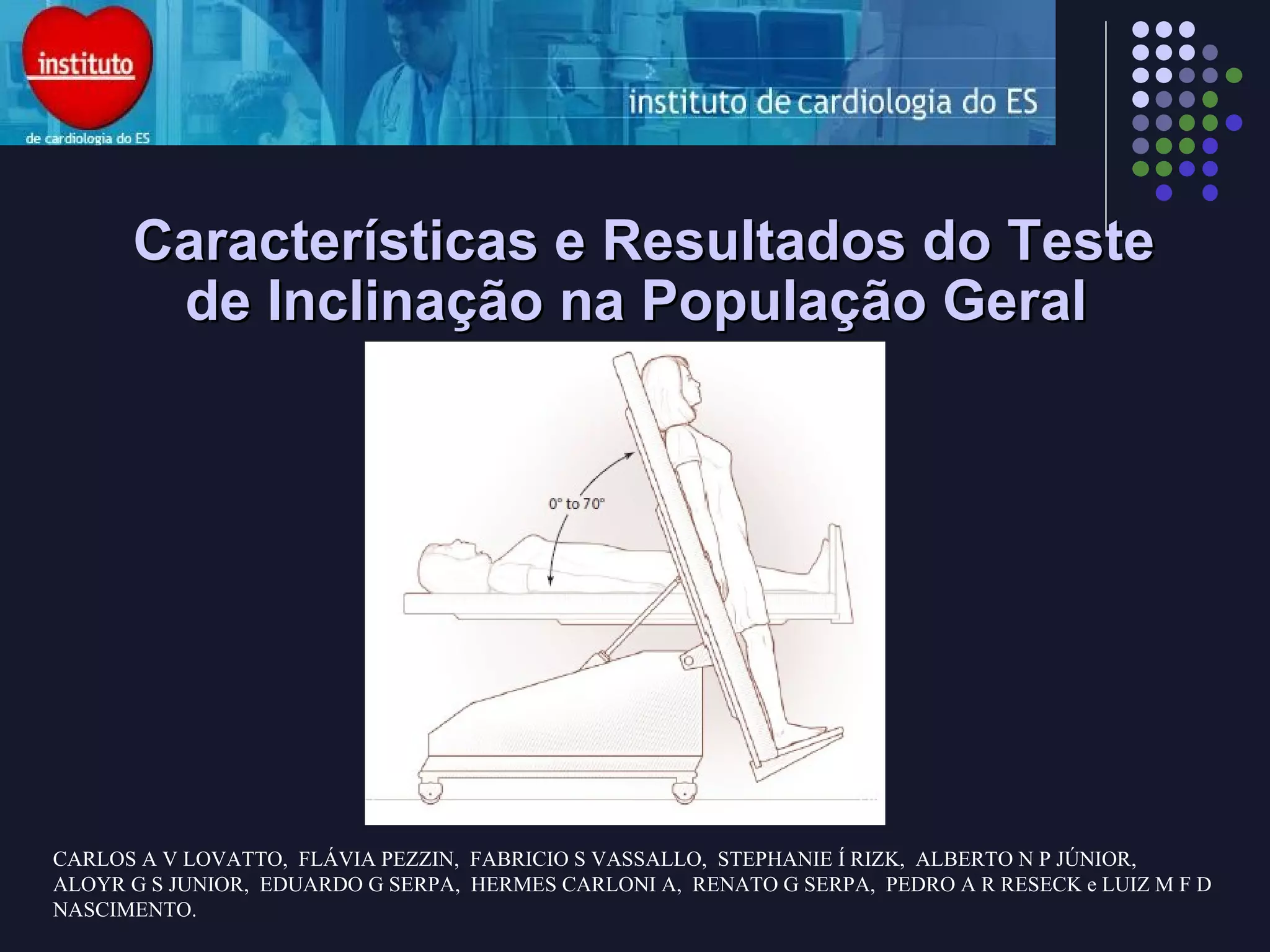 O documento descreve um estudo sobre o teste de inclinação (tilt test) em 348 pacientes. Os principais resultados foram: