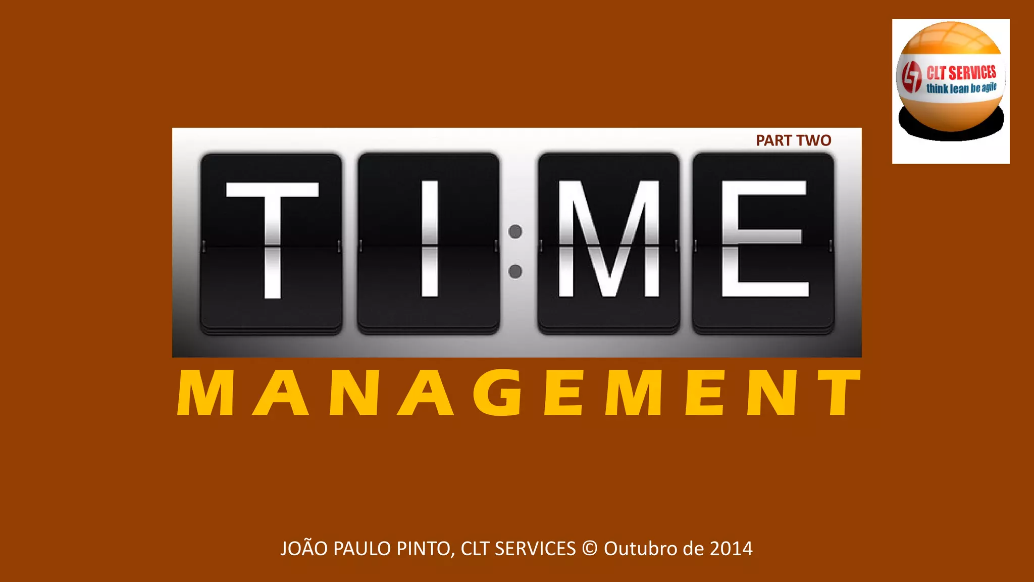 O documento discute várias técnicas e ferramentas para melhorar a gestão do tempo, incluindo a técnica Pomodoro, definir prioridades usando a regra 1-3-5, e formas de reduzir distrações como o aplicativo LeechBlock. Também aborda paradoxos comuns da gestão do tempo e como quebrar maus hábitos para usar o tempo de forma mais eficiente.