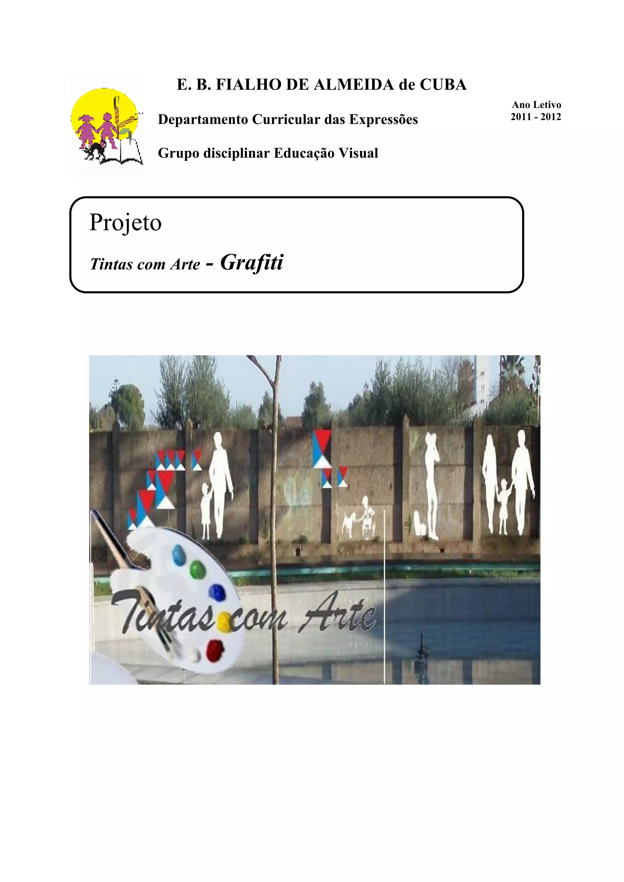 Este documento descreve um projeto de pintura mural a ser realizado por alunos da escola de Cuba. O projeto consiste na pintura de um mural no Parque Manuel António de Castro utilizando técnicas de grafite. O projeto visa desenvolver capacidades artísticas e manuais dos alunos enquanto integra conteúdos das disciplinas de Educação Visual e Tecnologia da Informação e Comunicação.