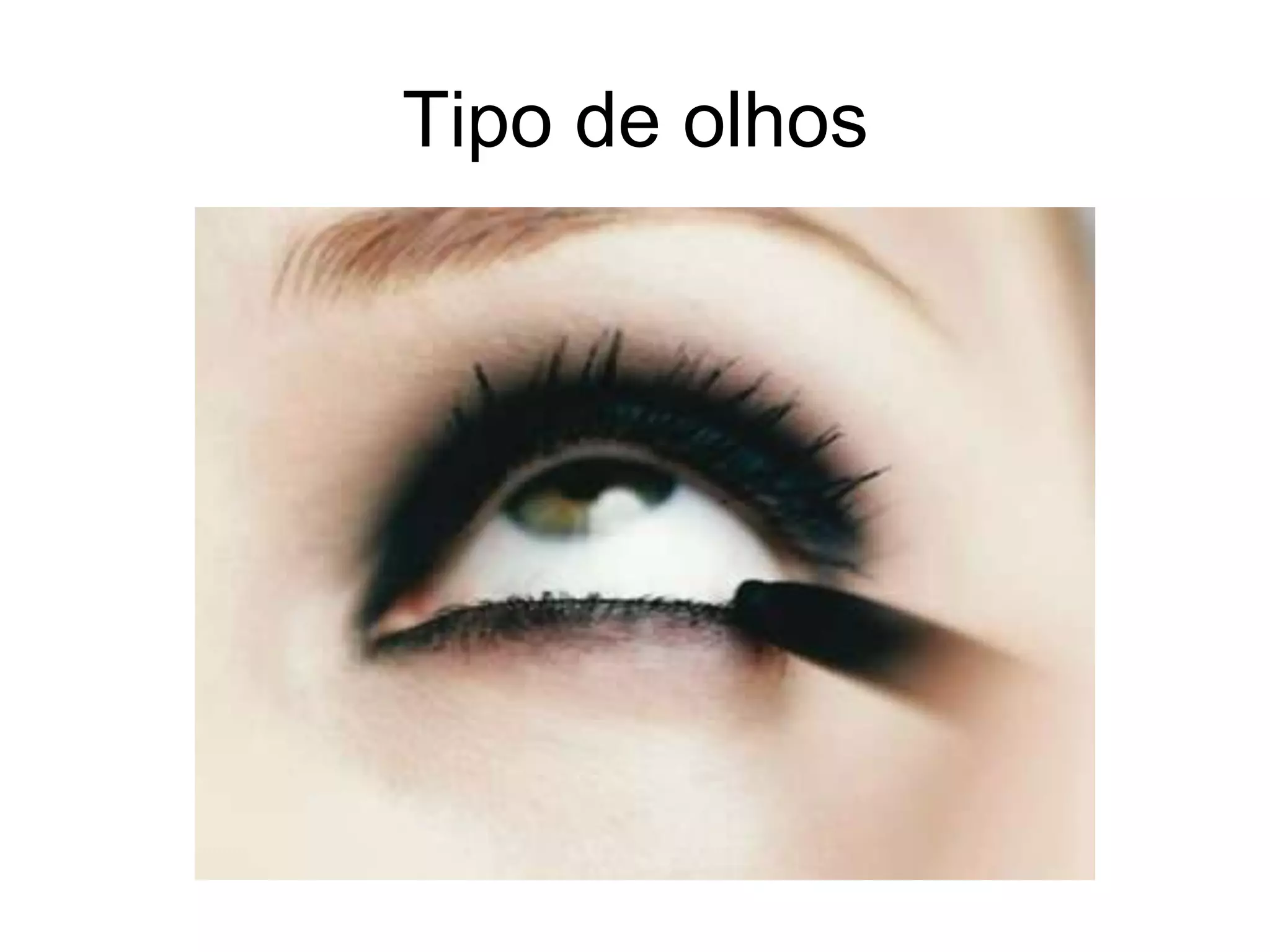 Os tipos de olhos incluem olhos normais, afastados, próximos, com bolsas, fundos, descaídos, grandes e pequenos. Olhos normais têm a distância entre os olhos igual ao comprimento de cada olho. Olhos afastados têm uma separação maior que a largura total do olho. Olhos próximos têm uma distância menor que a largura total.