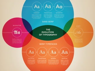 O documento discute o tema da tipografia, definindo-a como a composição de texto usando símbolos alfabéticos para reproduzi-lo de forma econômica. Aborda também a anatomia dos tipos, classificação tipográfica, legibilidade, entrelinhamento, tipografia como conteúdo, na publicidade e construção de marcas. Finaliza com os "pecados tipográficos" de fazer arranjos visuais que superem a mensagem.