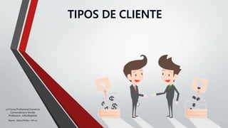 Este documento descreve 10 tipos diferentes de clientes e como lidar com cada um deles. Os tipos de clientes incluem o indeciso, o decidido, o apressado, o falador, o especialista, o calado, o negociador, o simpático, o satisfeito e o insatisfeito. O documento conclui que cada cliente é único e deve ser atendido com paciência e calma.