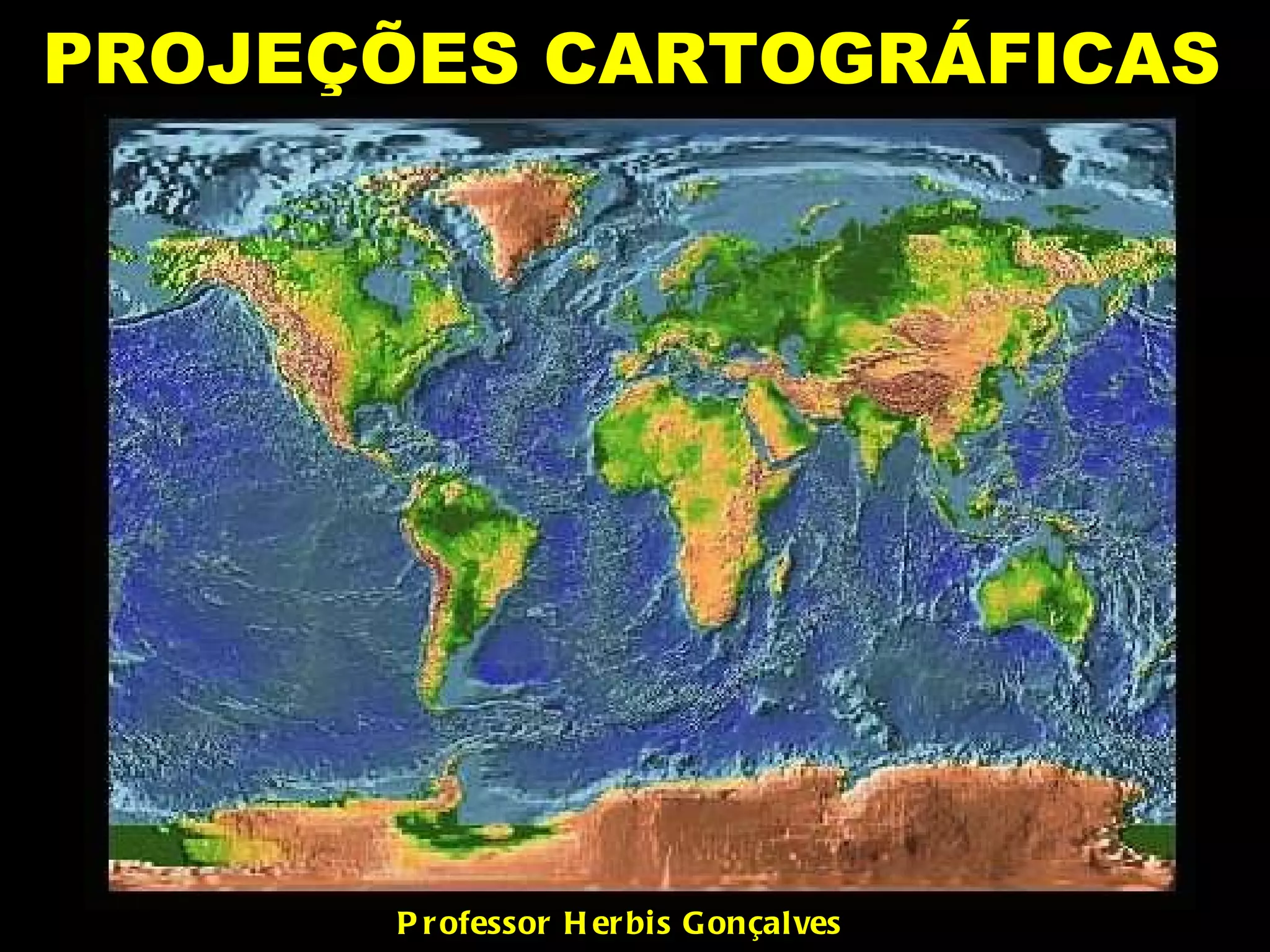 O documento discute vários sistemas de projeções cartográficas, classificando-os de acordo com seu método, superfície de projeção e propriedades. Detalha vários tipos de projeções incluindo cônica, cilíndrica, azimutal e policônica, descrevendo as características de projeções específicas como Aitoff, Lambert e Mercator.