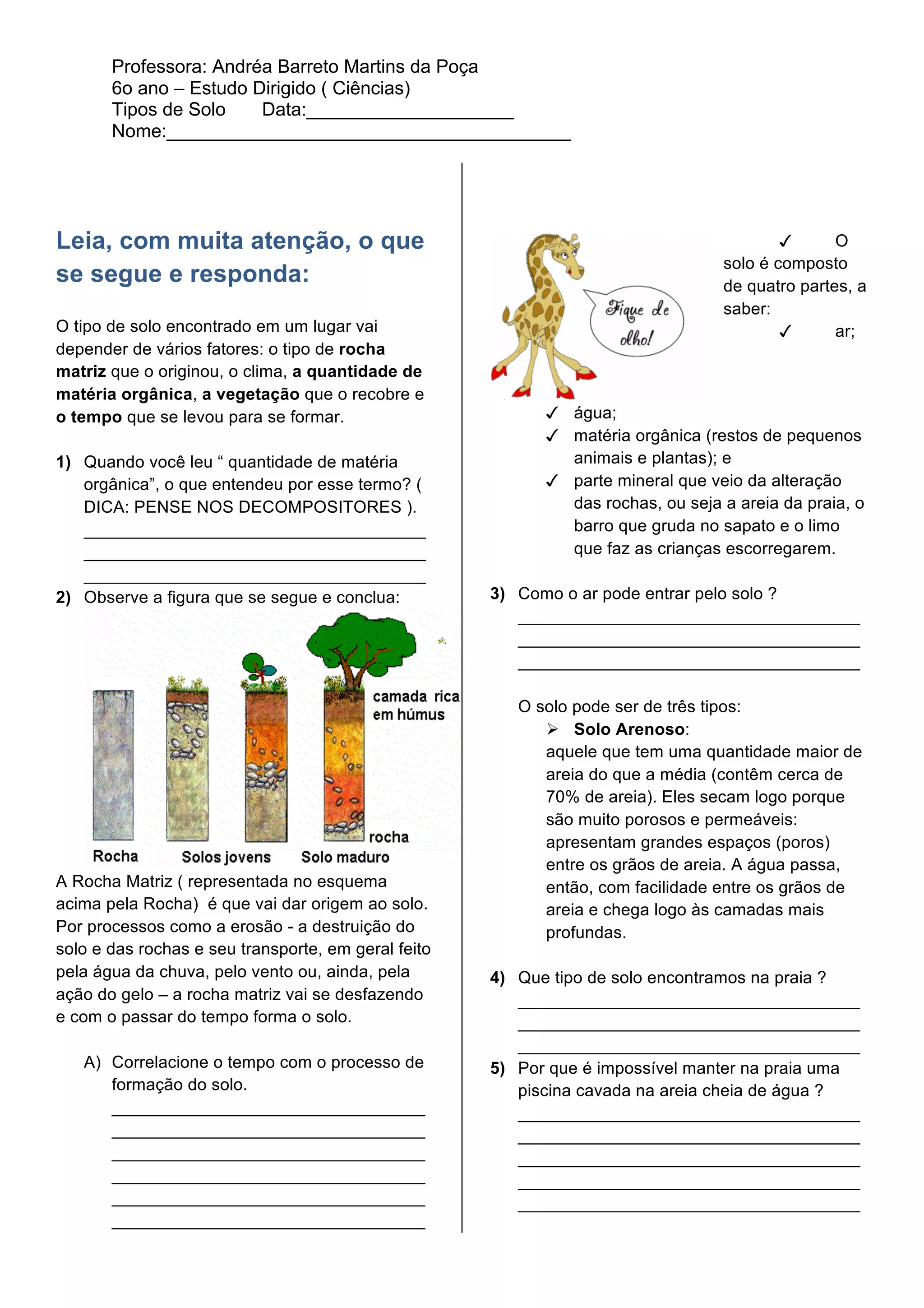 pela água da chuva, pelo vento ou, ainda, pela 4) Que tipo de solo encontramos na praia ?