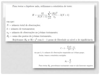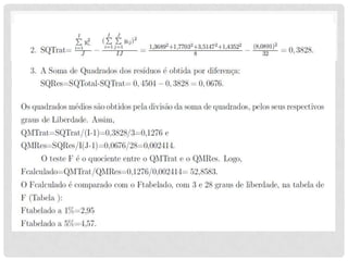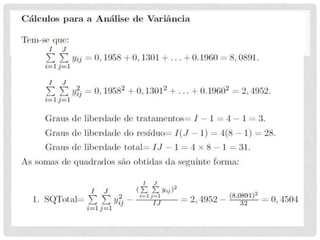 3) A ANOVA é usada para decompor a variação total em suas fontes e testar se há diferenças significativas entre os tratamentos.