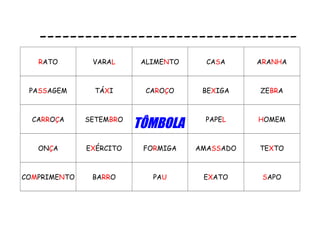 Uma lista de palavras aleatórias sem conexão aparente entre elas, incluindo nomes de animais, objetos, meses do ano e conceitos abstratos.
