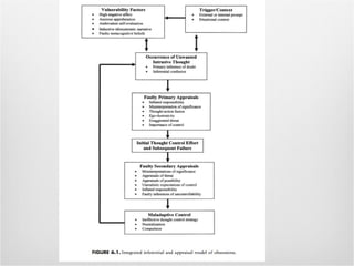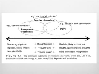 Este documento discute vários tipos de ansiedade e transtornos ansiosos, incluindo ansiedade generalizada, fobias, ataques de pânico e transtorno obsessivo-compulsivo (TOC). Ele fornece detalhes sobre os sintomas, características e tratamentos desses transtornos, com foco no TOC.