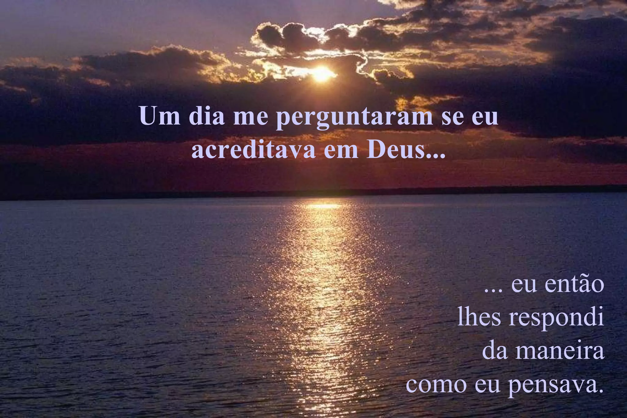 O poema descreve as muitas maneiras pelas quais Deus está presente no mundo a cada dia, incluindo na natureza, nos seres humanos e em todos os aspectos da vida e da criação. O autor acredita que Deus pode ser encontrado na beleza da Terra, nos olhos das crianças, e na essência mesma da vida e da morte.