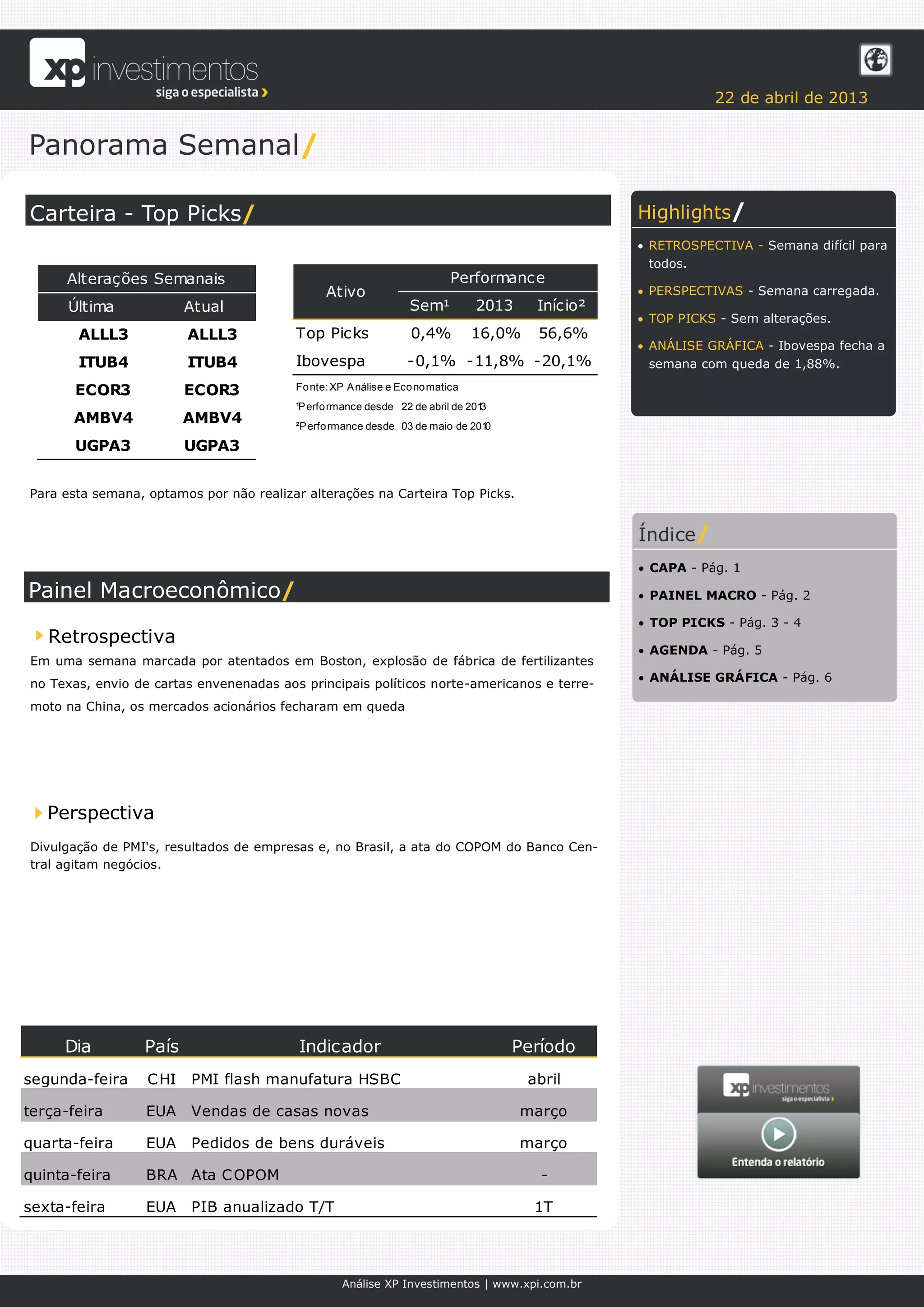 3) A carteira de ações recomendadas se manteve inalterada com desempenho levemente superior ao Ibovespa.