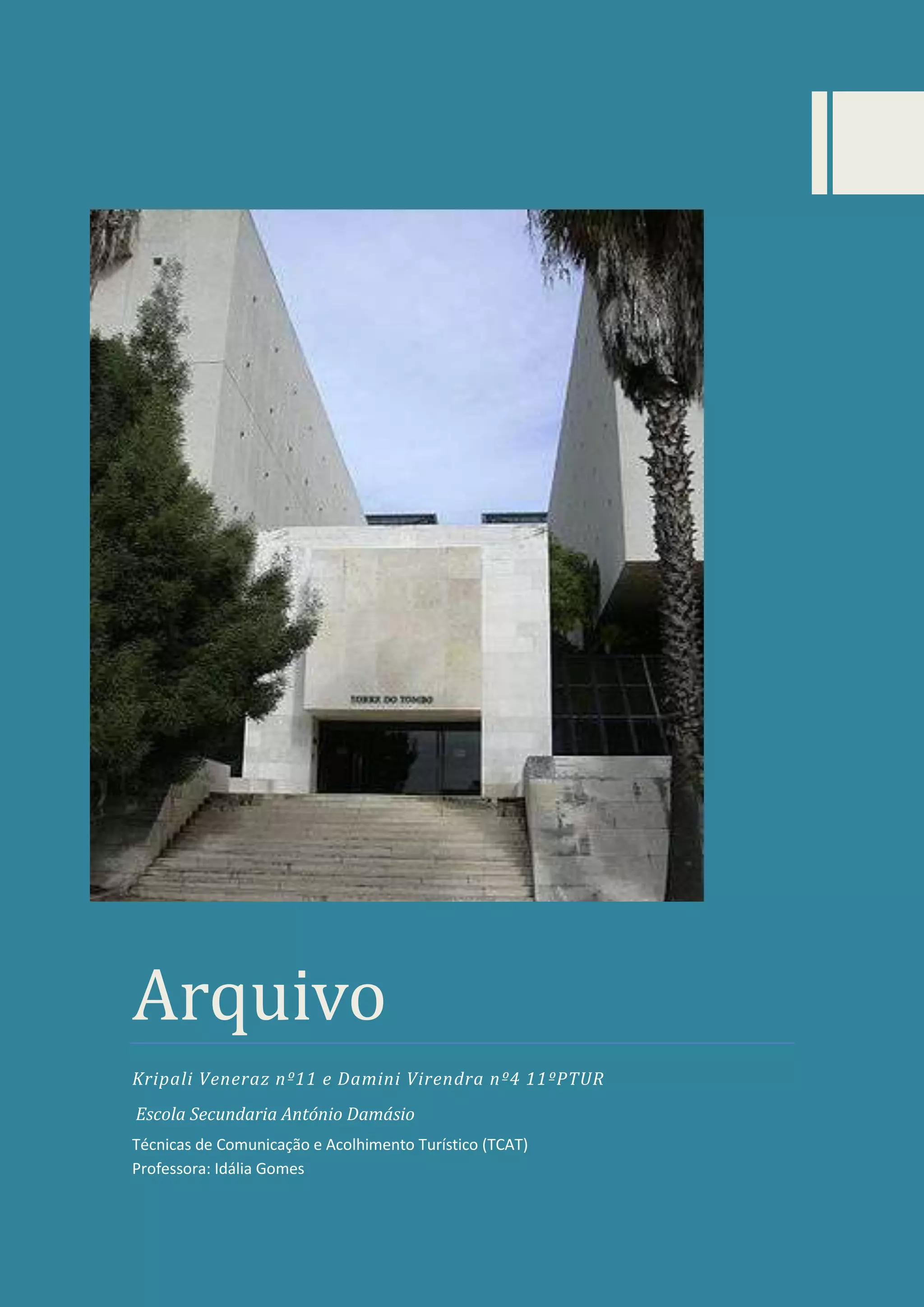 Este documento descreve o trabalho realizado para aprender sobre arquivologia. Na primeira parte, pesquisa o Arquivo Nacional da Torre do Tombo, incluindo sua história. Na segunda parte, cria um arquivo para uma pequena agência de viagens, organizando documentos em categorias como pessoal, expediente geral, balcão e fornecedores.