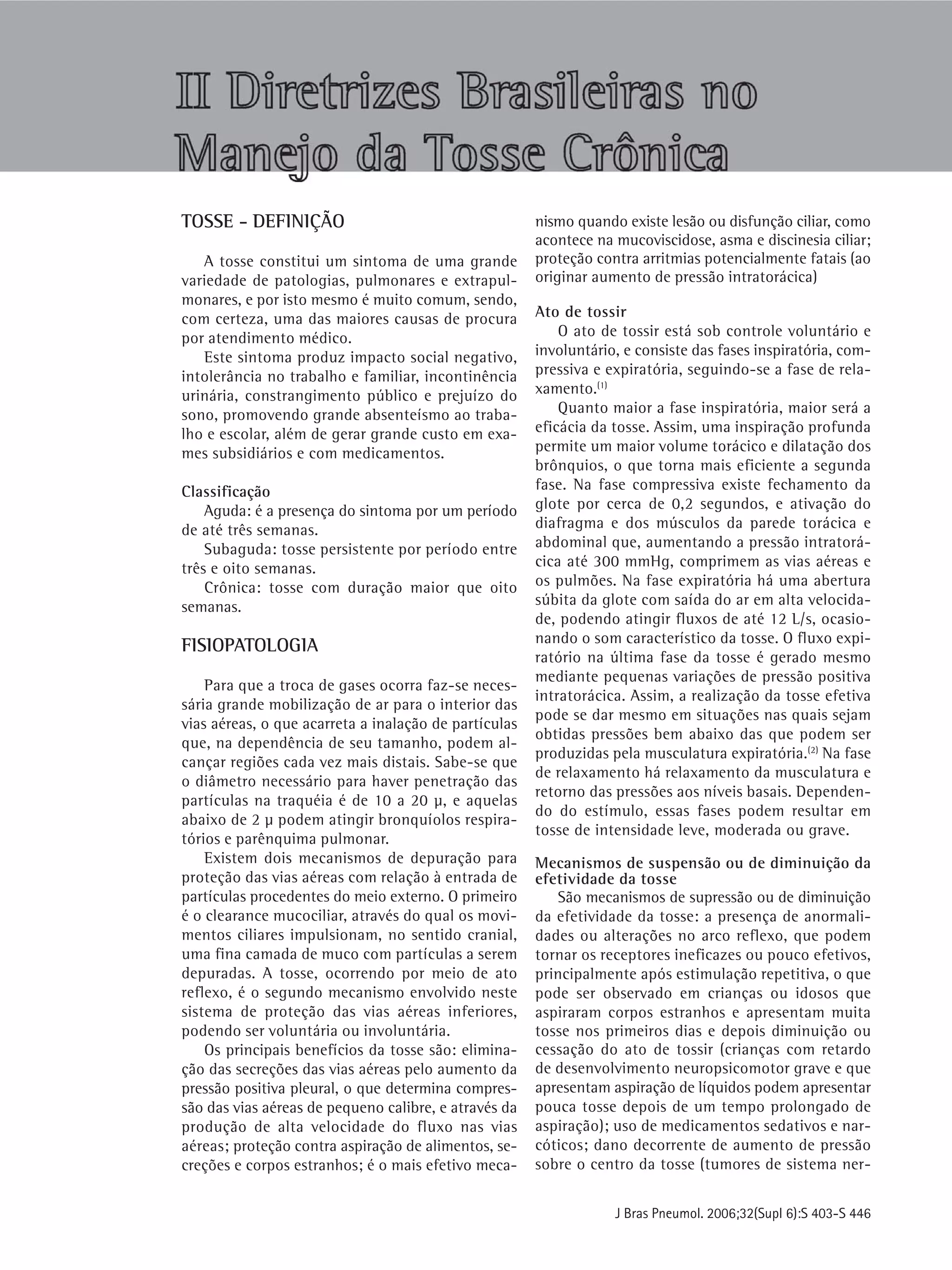 Este documento fornece uma introdução sobre tosse, definindo-a como um sintoma comum com grande impacto social e de saúde. Classifica a tosse em aguda, subaguda e crônica, e descreve a fisiopatologia e os mecanismos do reflexo da tosse, incluindo receptores, nervos aferentes, centro da tosse e músculos efetores. Também discute os mecanismos inflamatórios envolvidos na tosse crônica.