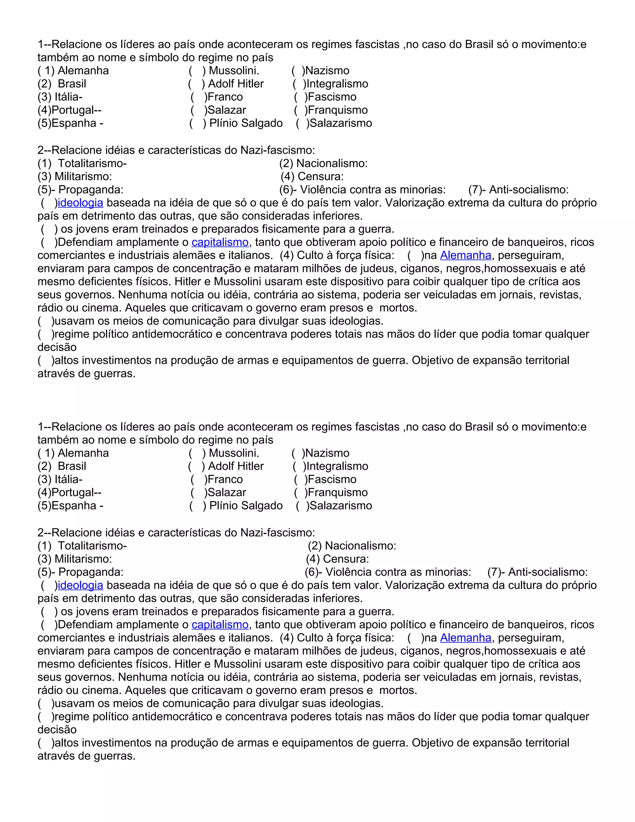 (2) Brasil ( ) Adolf Hitler ( )Integralismo