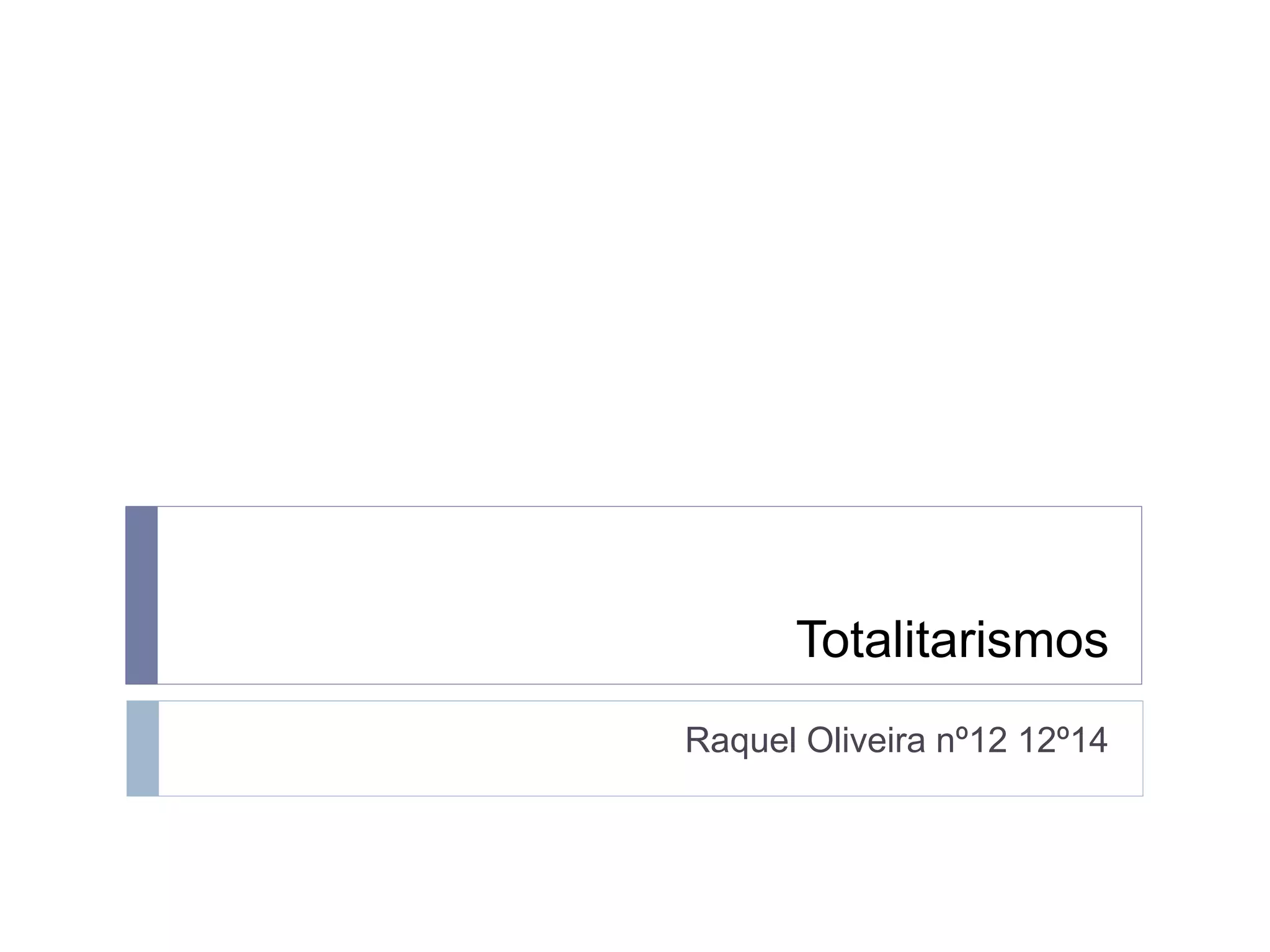 Este documento descreve os sistemas totalitários de fascismo na Itália e Alemanha. Define o totalitarismo como concentração de poder num único partido ou líder. Detalha como esses regimes suprimiram liberdades individuais e coletivas em prol do estado e culto ao líder, e como controlaram a sociedade, economia e cultura através de propaganda e violência.