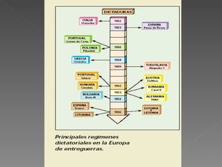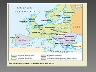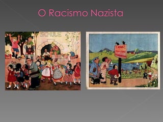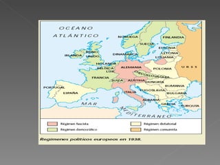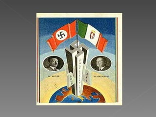 O documento descreve a ascensão do fascismo na Itália sob Mussolini e no nazismo na Alemanha sob Hitler. Resume os principais pontos como o nacionalismo, o culto ao líder, a supressão dos direitos individuais, o controle total do Estado sobre a sociedade e a política racista e expansionista destes regimes totalitários.
