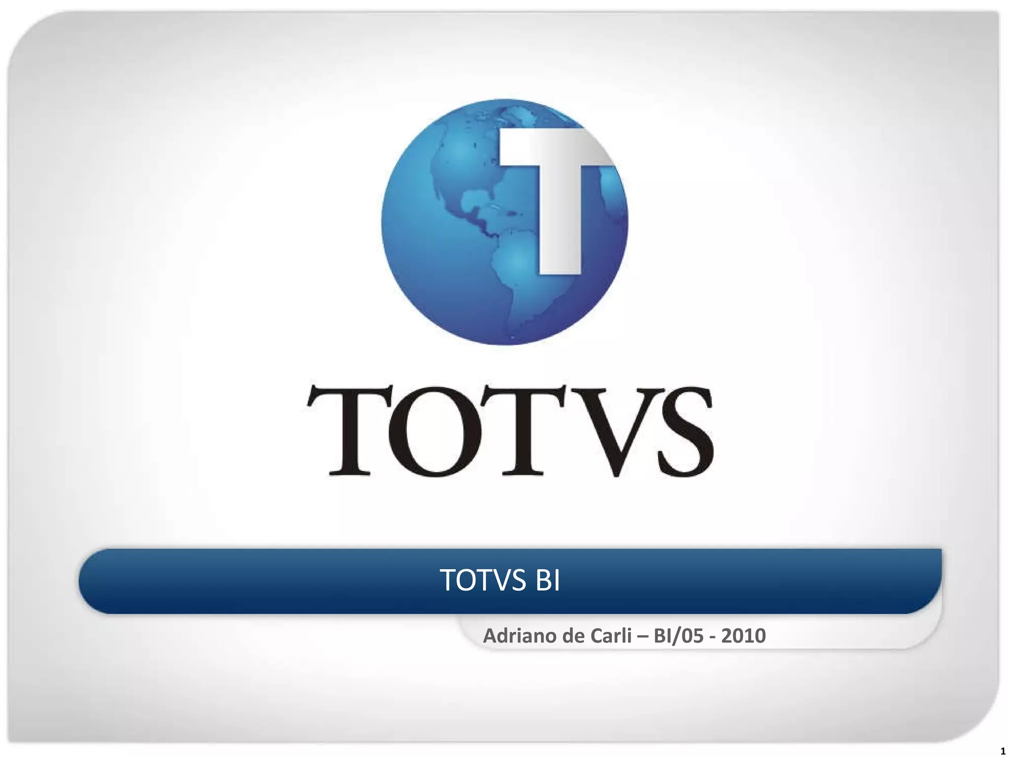 O documento descreve as principais características e funcionalidades do TOTVS BI, incluindo o Logix BI (ferramenta de análise e business intelligence), o GRL Web (gerador de relatórios) e os Agentes Inteligentes (ferramenta de notificações).