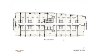 Este documento fornece informações técnicas sobre um empreendimento comercial, incluindo detalhes sobre as unidades, como lojas, salas comerciais e duplex, além de recursos como estacionamento e sistema de automação e controle.