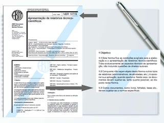 3) São listadas as principais normas da ABNT aplicáveis à elaboração de trabalhos acadêmicos, como apresentação, citações e numeração.