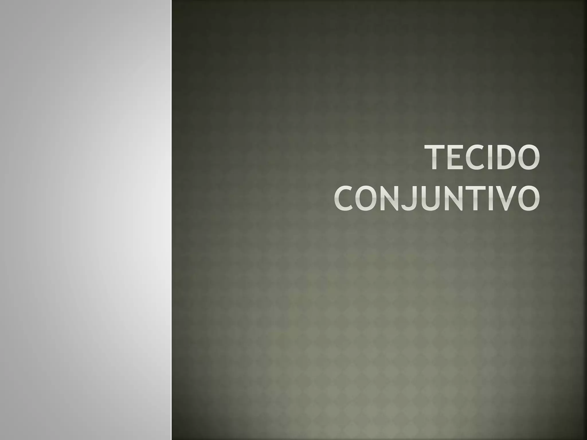 O documento descreve o tecido conjuntivo, que sustenta os órgãos e permite a conexão entre as células do corpo. É composto por células, fibras e substância fundamental, e pode ser classificado como frouxo ou denso dependendo da quantidade e distribuição dessas componentes. O documento também descreve outros tipos de tecidos como adiposo, hematopoiético, ósseo e cartilaginoso.