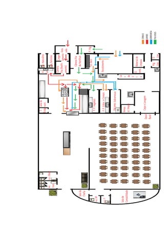 O documento apresenta os cálculos e dimensionamentos necessários para planejar uma unidade de alimentação coletiva para 200 refeições, incluindo a área e distribuição de setores, equipamentos e utensílios necessários. É detalhado o tamanho de cada setor como recepção, armazenamento, preparo e distribuição. Também é apresentada a lista de equipamentos a serem adquiridos como fogão, forno, geladeira, utensílios para servir refeições.